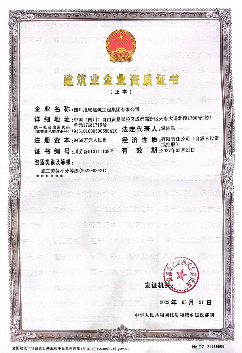 四川旭瑞建筑工程集團(tuán)有限公司資質(zhì)范圍及等級(jí):