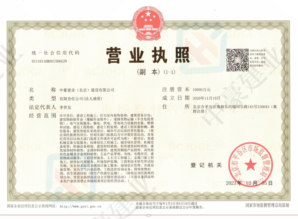 中豪建業(yè)(北京)建設(shè)有限公司資質(zhì)范圍及等級(jí):