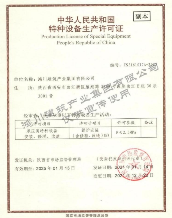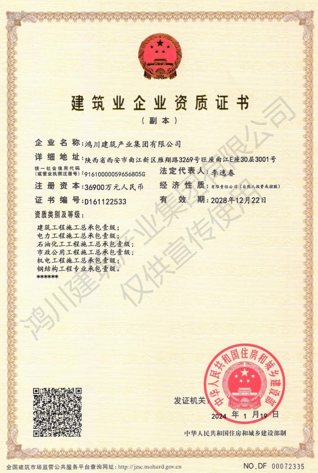 鴻川建筑產(chǎn)業(yè)集團有限公司資質范圍及等級:
